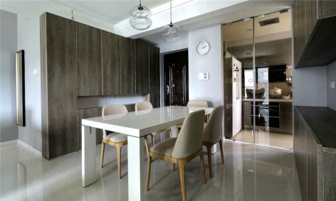 时代欣城三居100平现代简约风格餐厅背景墙酒柜设计图