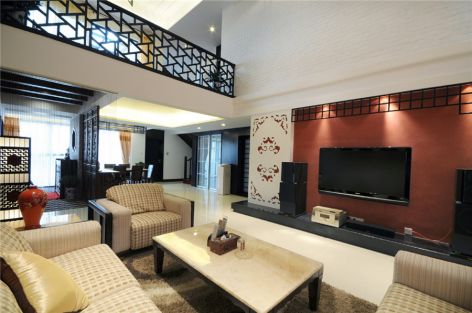 蓝光COCO蜜城350平别墅中式风格装修案例风效果图