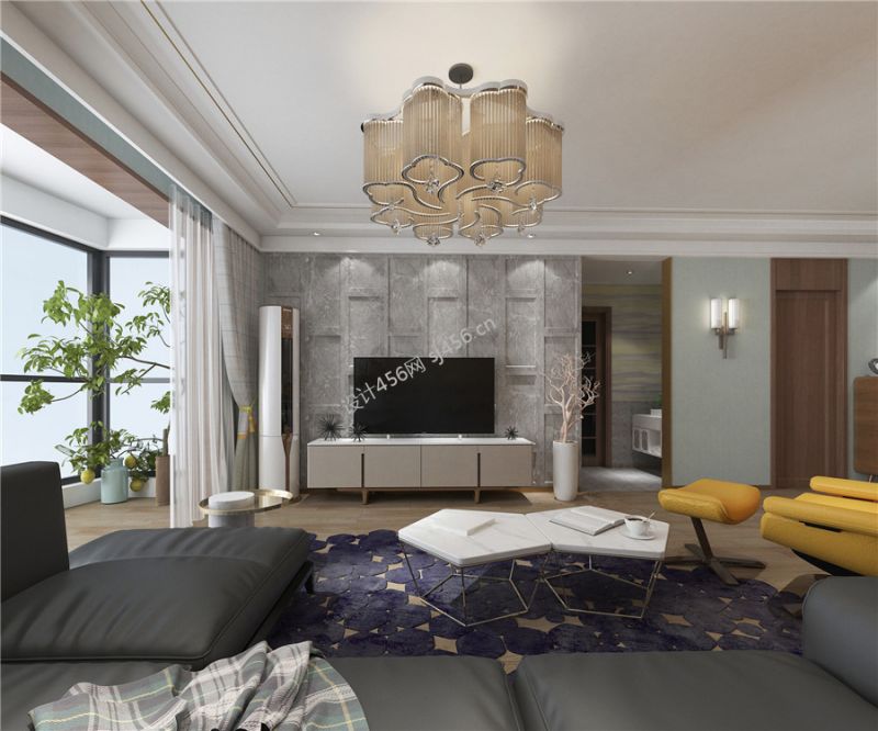 南湖世纪120平三居现代简约风格装修案例风效果图