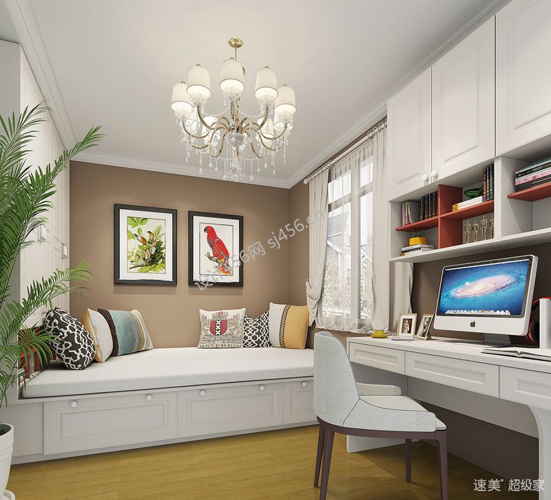 北欧知识城北欧风格102平三居室书房装修案例