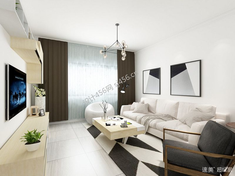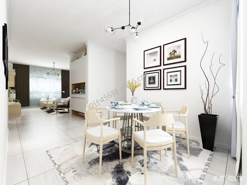 北欧知识城北欧风格102平三居室装修案例风效果图