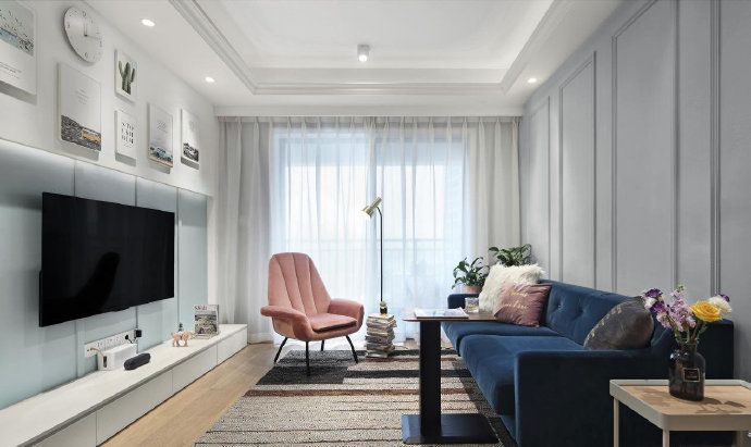 清河阳光北欧风格96平米三居室装修案例