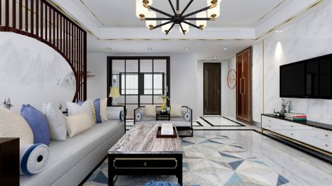 90平米现代客厅三居装修实景图
