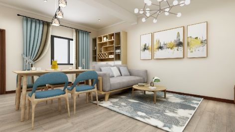 蔚蓝卡地亚78平米日式二居室装修案例风效果图