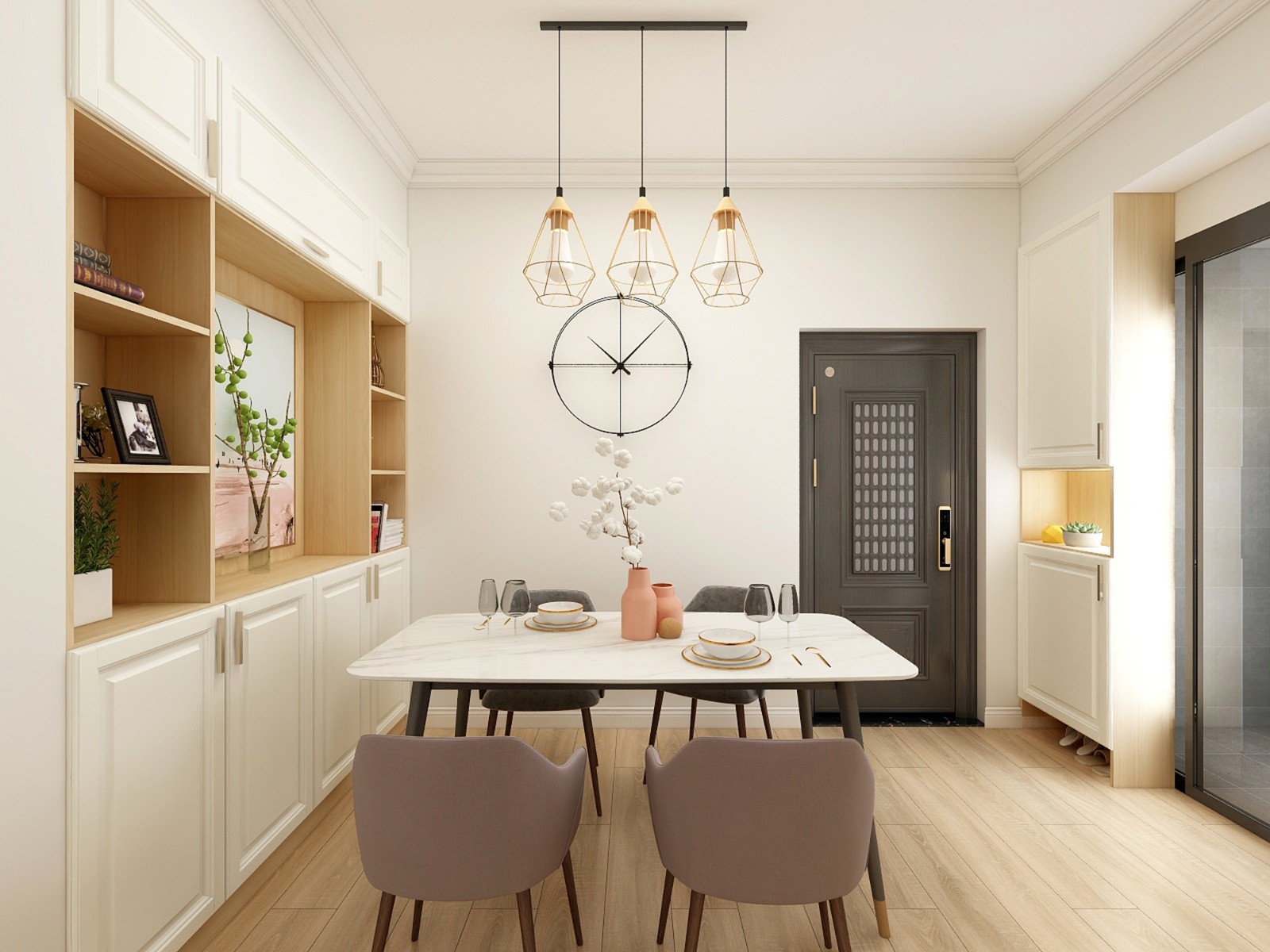 吊顶和小闹钟,专属定制,让这个过于单调的餐厅,透露出一种文艺范。
