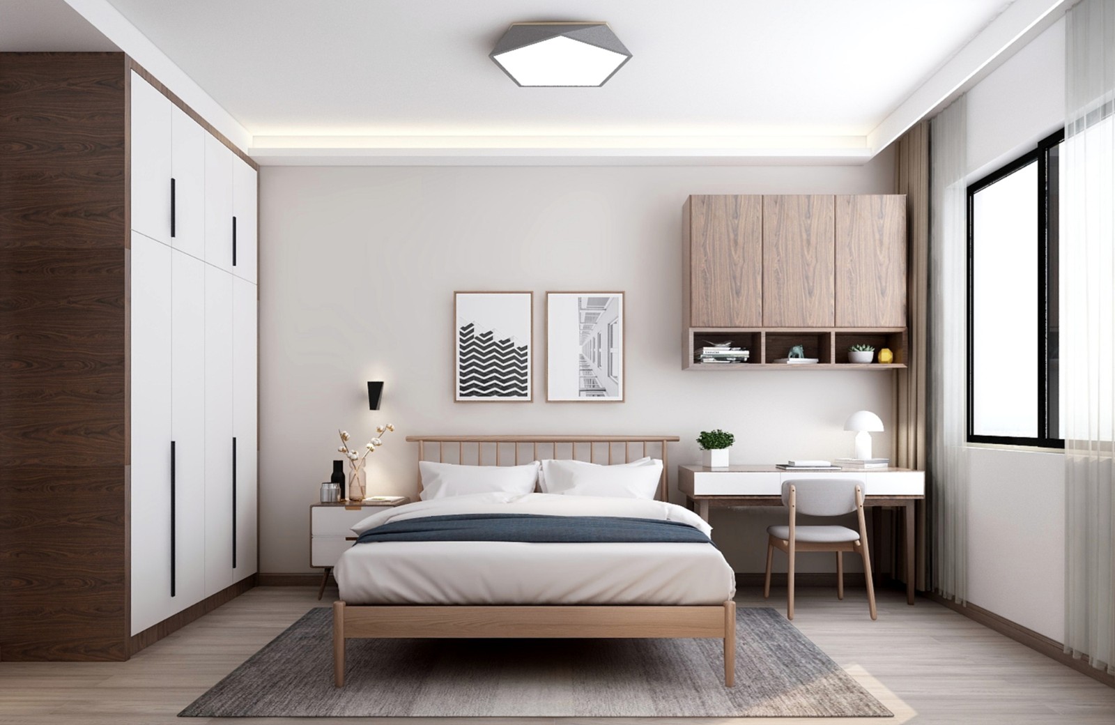 梳妆台与书桌合二为一,一桌两用,更加节省空间。