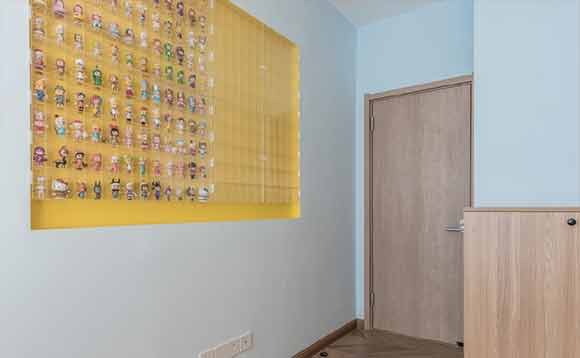 儿童房的装修效果,淡蓝色乳胶漆装饰的墙面,搭配定制的原木色衣柜和榻榻米,虽然没有华丽的视觉效果,却也显得格外亲切。