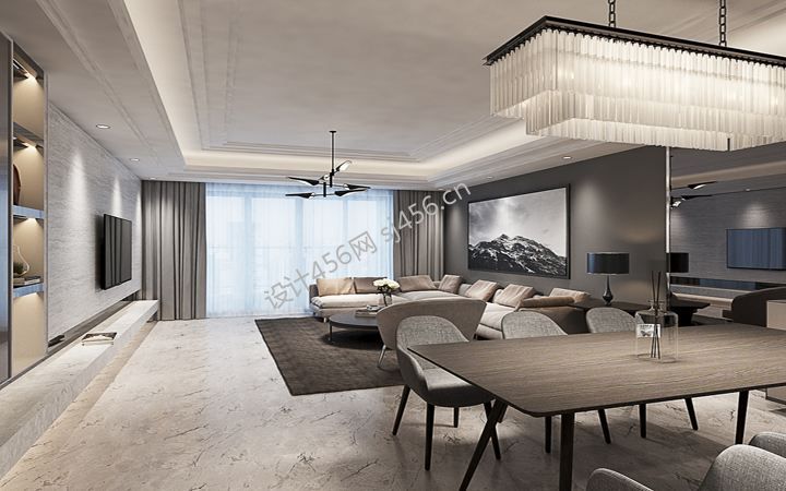 蓝山美树98平三居室现代简约风格装修案例风效果图