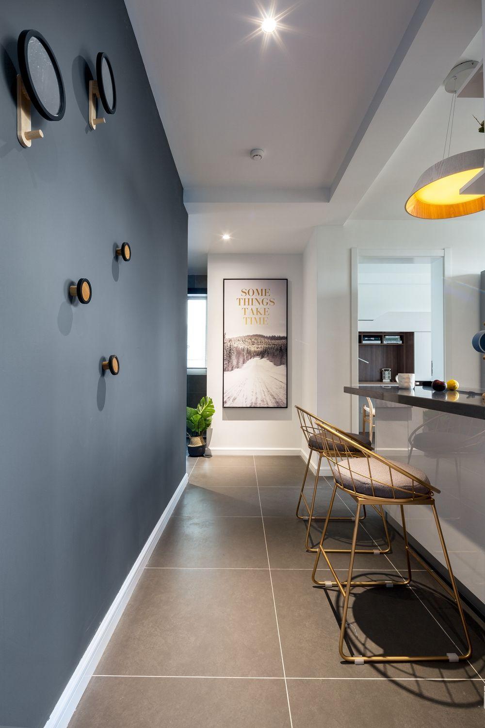 过道墙面做了装饰物点缀,设计了挂钩挂物品,这里的空间被完全利用起来了。
