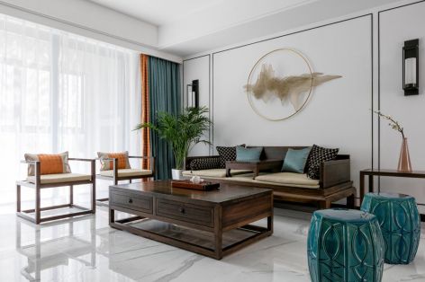中房学府海棠新中式风格136平米三居室装修案例风效果图