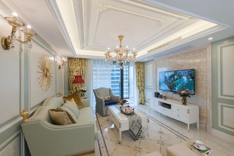 保利香槟国际美式风格149平米三居室装修案例风效果图