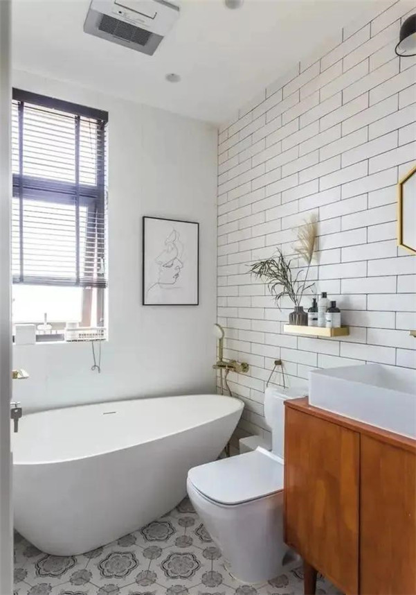 上半部分用防水乳胶漆,下半部分用瓷砖的搭配方式最近也是比较火的,其实防水乳胶漆的防水防潮性能都没问题,颜色比较多样,跟瓷砖也比较好搭配。