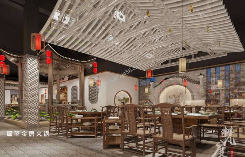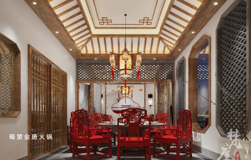 1000平米蜀望金唐火锅中式风格装修案例风效果图