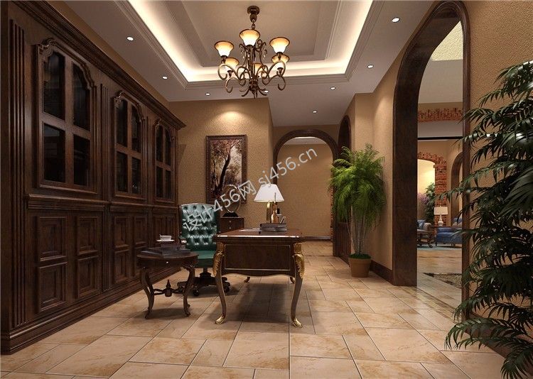 2020美式350平米别墅书房装修效果图