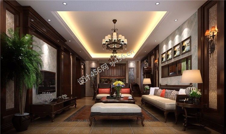 保利公园198美式350平米别墅装修案例风效果图