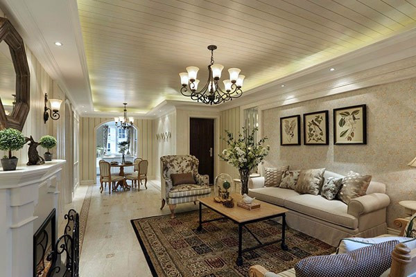 鲁能城128㎡四居室田园风格客厅装修效果图