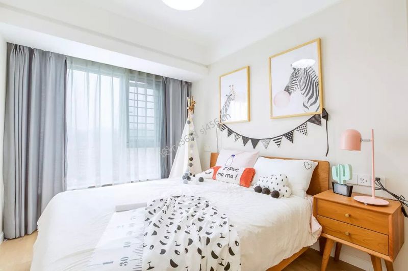 95㎡三居室现代北欧风格卧室窗帘装修实景图