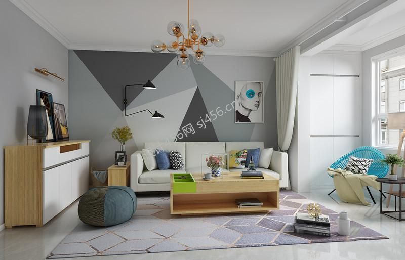 天邑宏御花园御苑北欧风格123平米三居室装修案例风效果图