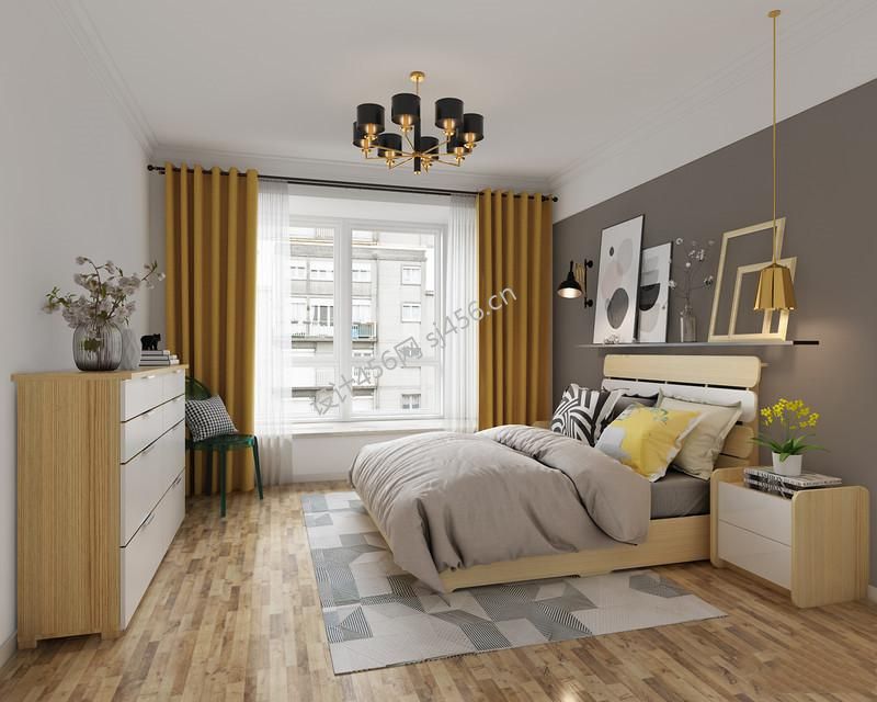 龙湖九里晴川现代风格90平米三居室装修案例风效果图