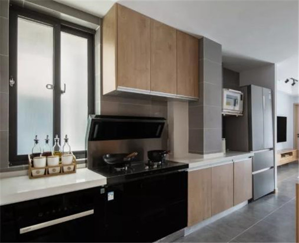 橱柜颜色划分:厨房橱柜的颜色,可以选用明显区分于其他空间的深色,能起到很好的划分空间作用,但需要注意的是,深色比较适合大空间,小空间用深色会显得压抑。