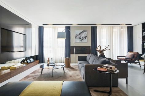 和泓麓江府时尚现代160平米别墅装修案例风效果图
