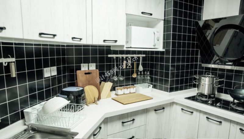 90平米日式风格三居室厨房黑色瓷砖装修图片