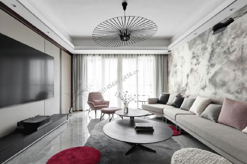 堰山和畔155平四居室现代轻奢风格装修案例风效果图