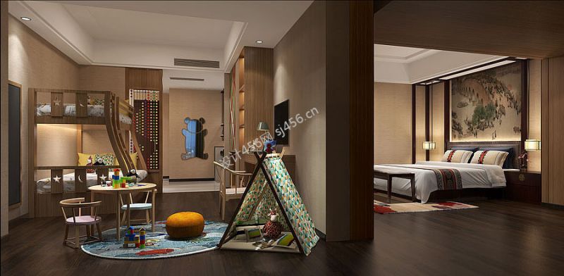 休闲度假酒店新中式风格1960平米装修案例风效果图