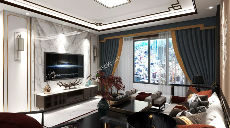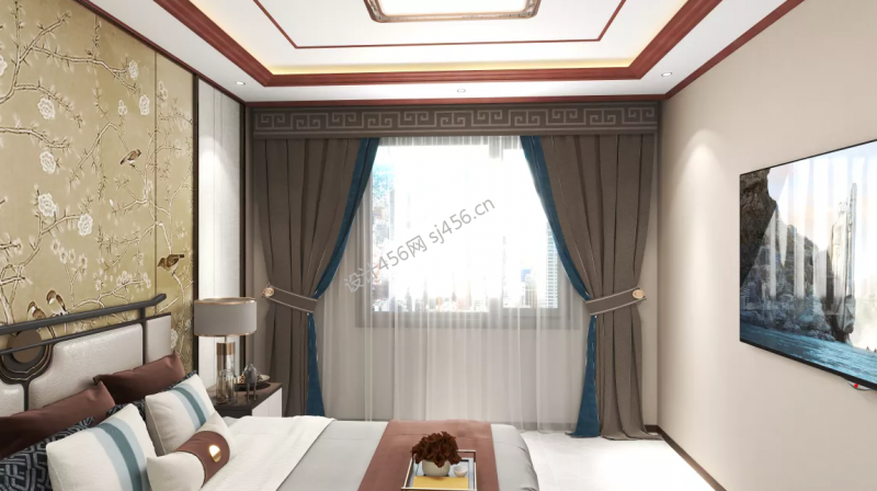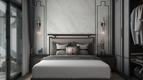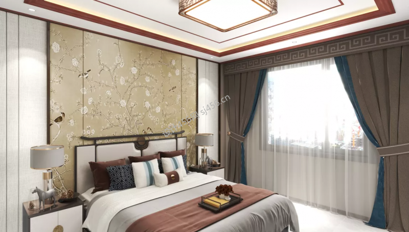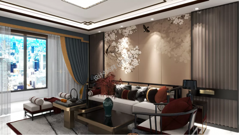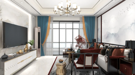 金峰皇庭文郡80新中式风格平三居装修案例风效果图