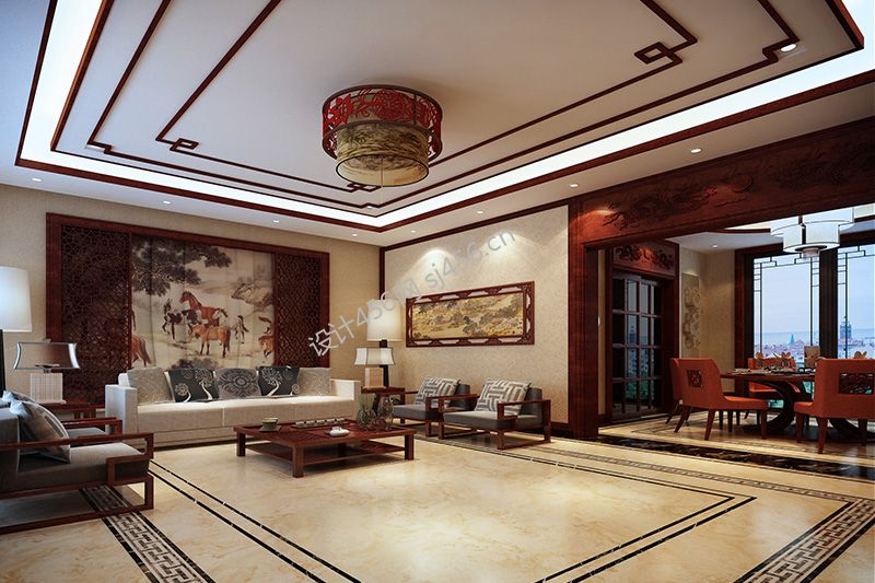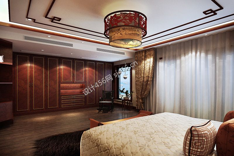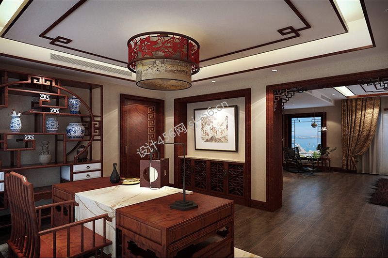 君汇华府210㎡中式风格四居室装修案例风效果图