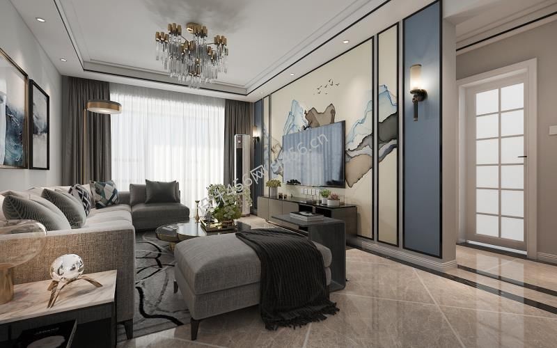 檀香湾三居108平新中式风格装修案例风效果图