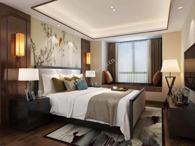三居108平新中式风格卧室装修图