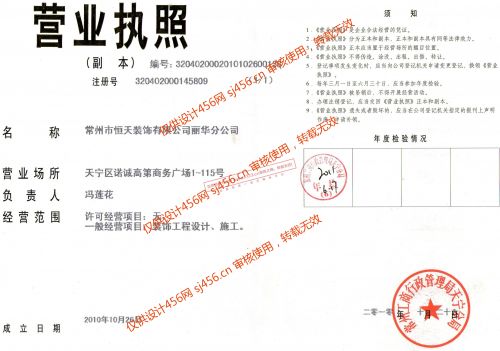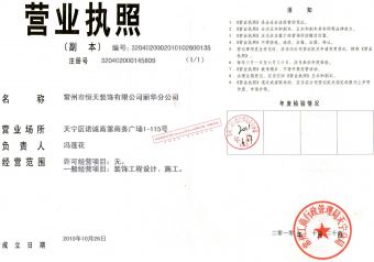 常州市恒天装饰有限公司,是专业从事家居装饰、店面、商务楼、厂房装修设计与施工的企业。拥有经验丰富的设计师、工程管理队伍及技术过硬的施工队伍。公司积极推行国内外最新装饰流行格调及装饰工艺,突出体现“时尚、高雅、简洁、实用”的风格,加上客户的实际需求,再融入精湛的施工,并以诚实的价格为客户提供 量身定做的优质服务。
