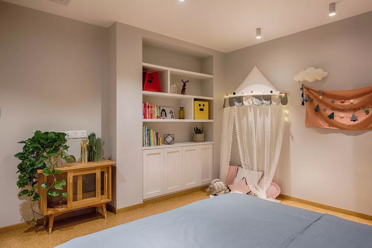 墙角除了放置书桌之外,我们可以在墙角安放一个书架,上面摆上一些家人喜爱的书籍,书架旁边我们还可以放置一把摇椅,在休闲时光里坐在摇椅上看看喜爱的书籍,或者和家人一起阅读也是不错的。