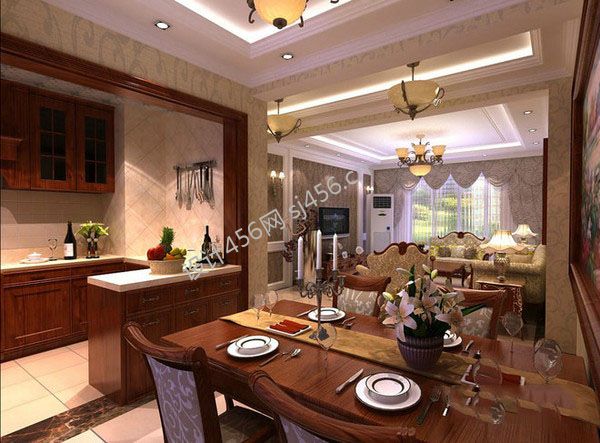 新城香溢澜桥古典欧式132平三居室餐厅装修案例