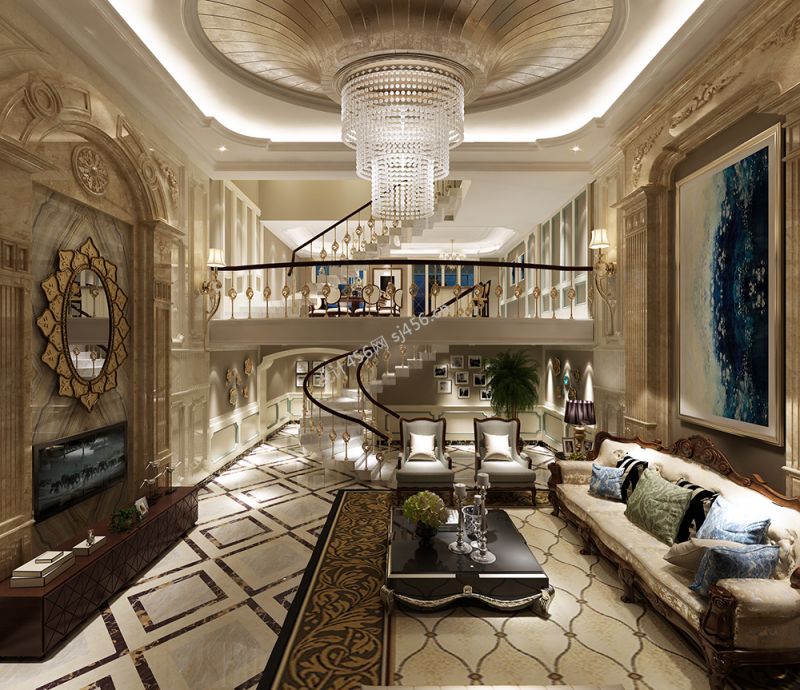 450—轻法式+现代混搭—湖滨一号别墅风效果图