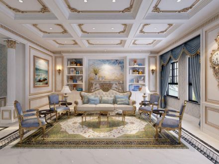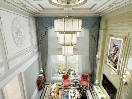 别墅335平新古典风格客厅吊顶装修效果图