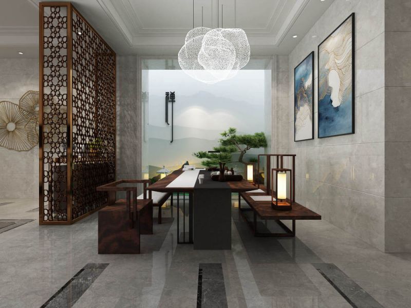 长城公寓小区四居154平新中式风格装修案例风效果图