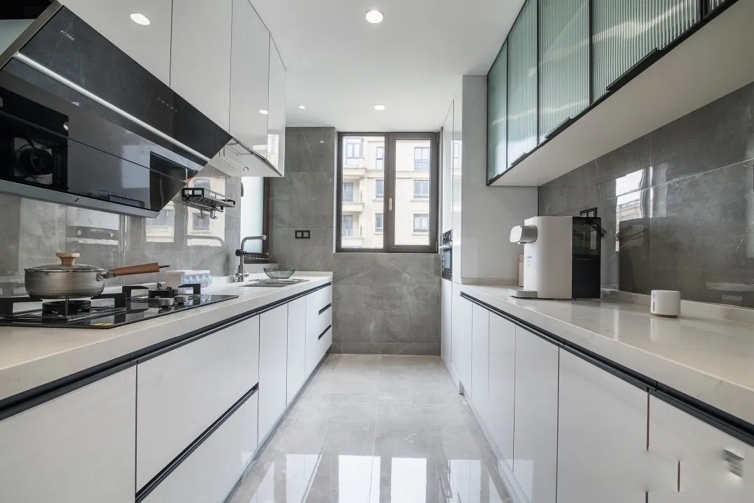 灯光的设计及柜体的机能性设计,给居住者打造一个舒适便利,视觉美感都能兼具的使用环境。