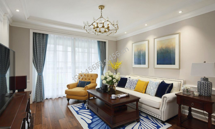 玉兰广场美式轻奢风格128平装修案例风效果图