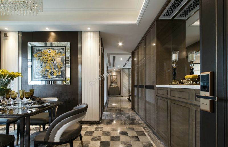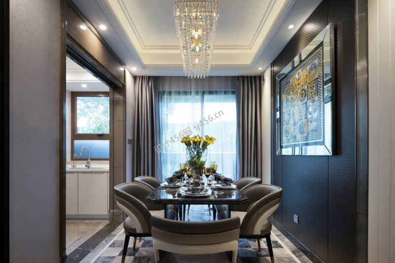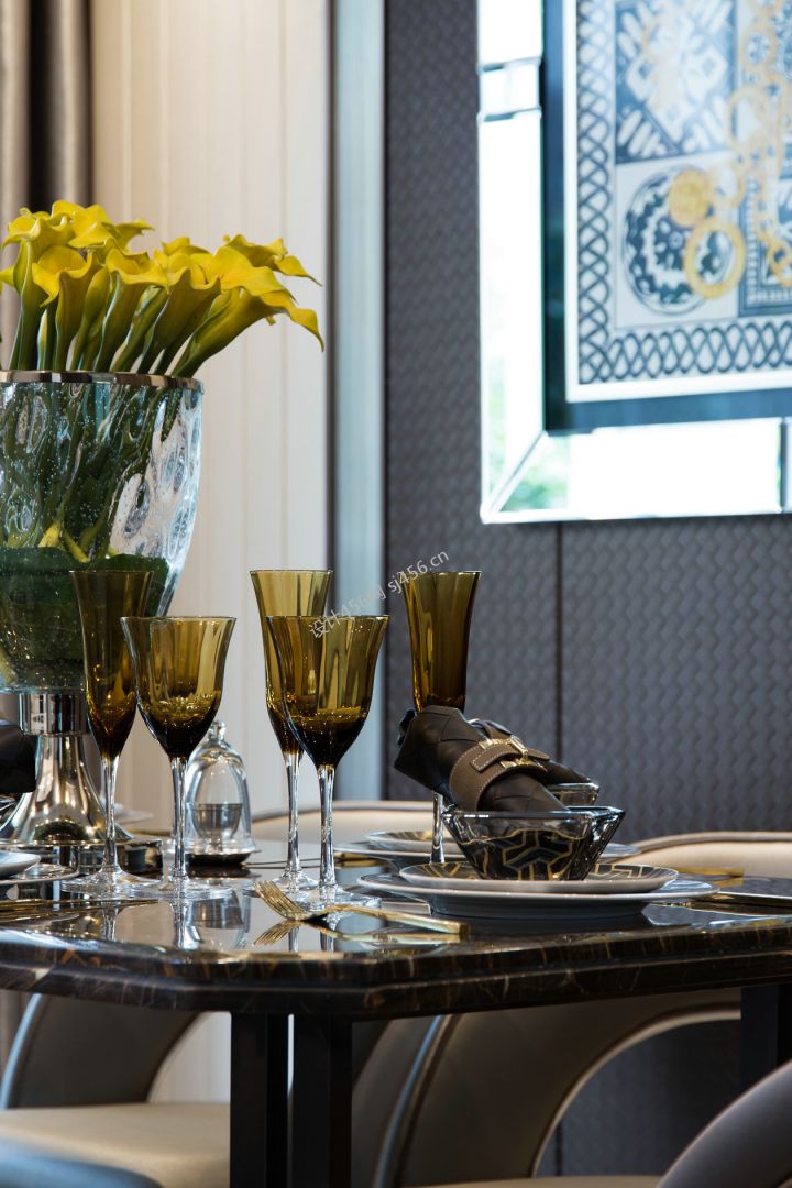 轻奢风格三居128平餐桌餐具装饰效果图赏析