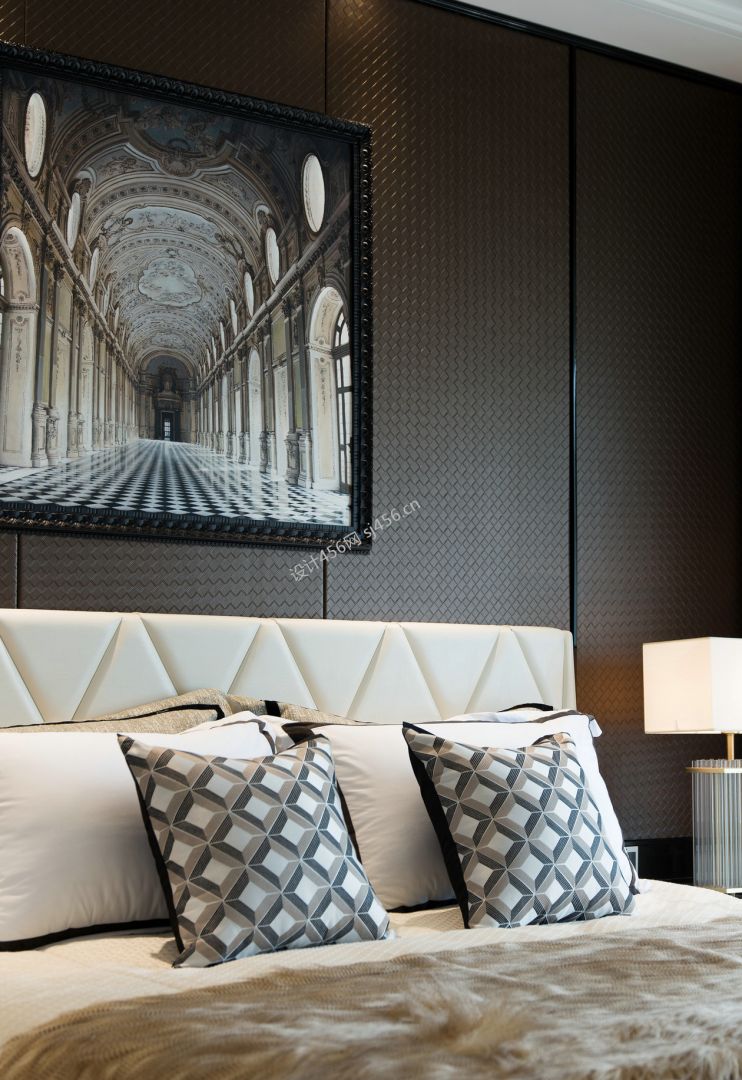 轻奢风格三居128平卧室床头装修设计效果图赏析