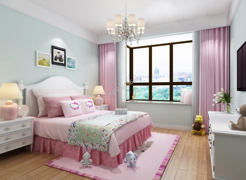 现代欧式风格女孩卧室装修效果图片