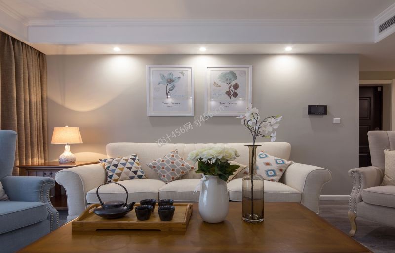 简约美式风格三室两厅新房客厅沙发墙设计图片