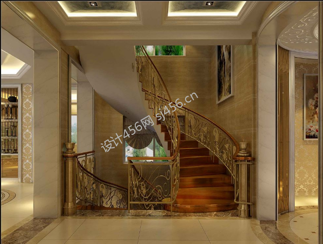 罗马庄园280平米独栋别墅欧式风格装修楼梯效果图