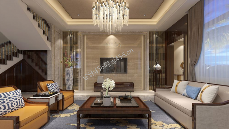 南华255平米别墅新中式风格装修效果图风效果图