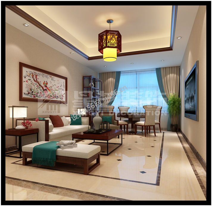 金碧梦苑120平米三居室新中式风格装修效果图风效果图