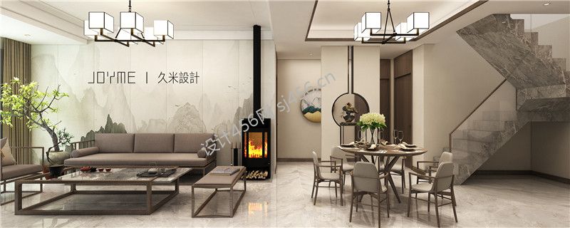 鸿坤理想城160平现代简约风格复式装修案例风效果图