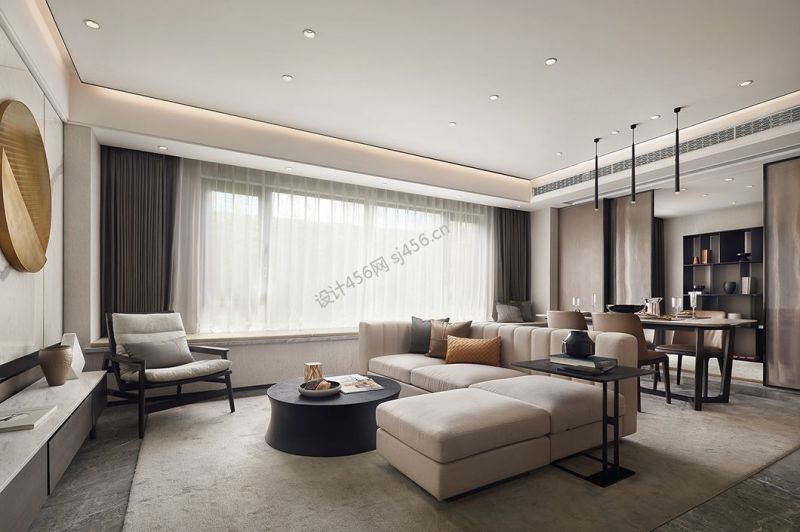 东方剑桥132㎡现代轻奢三居室装修案例风效果图