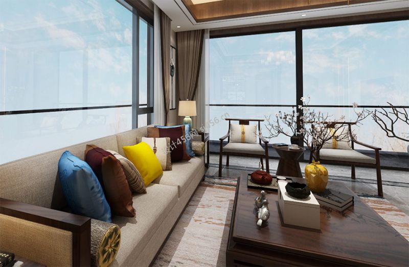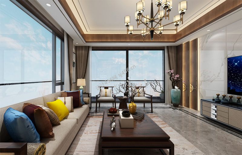 上东汇126平新中式风格三居室全案设计案例风效果图
